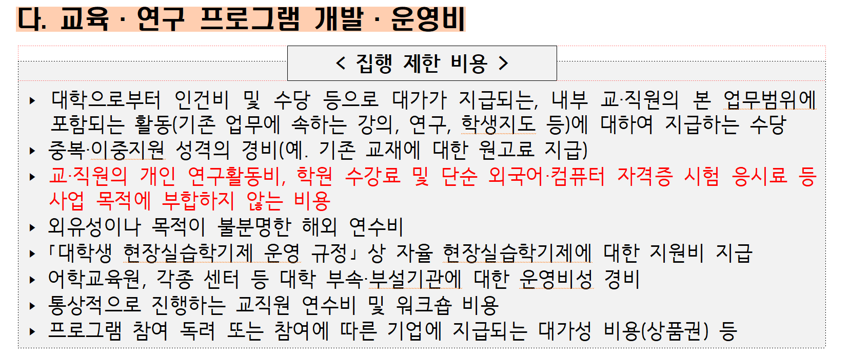 ※ 전문기관 교육프로그램 참여 지원불가
