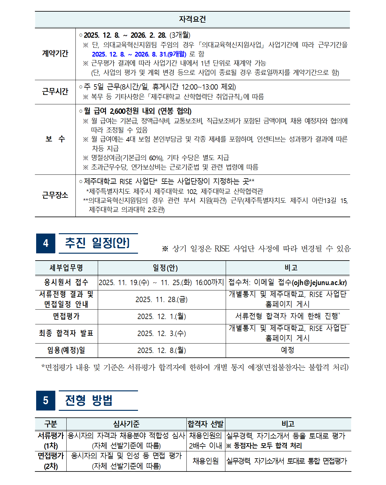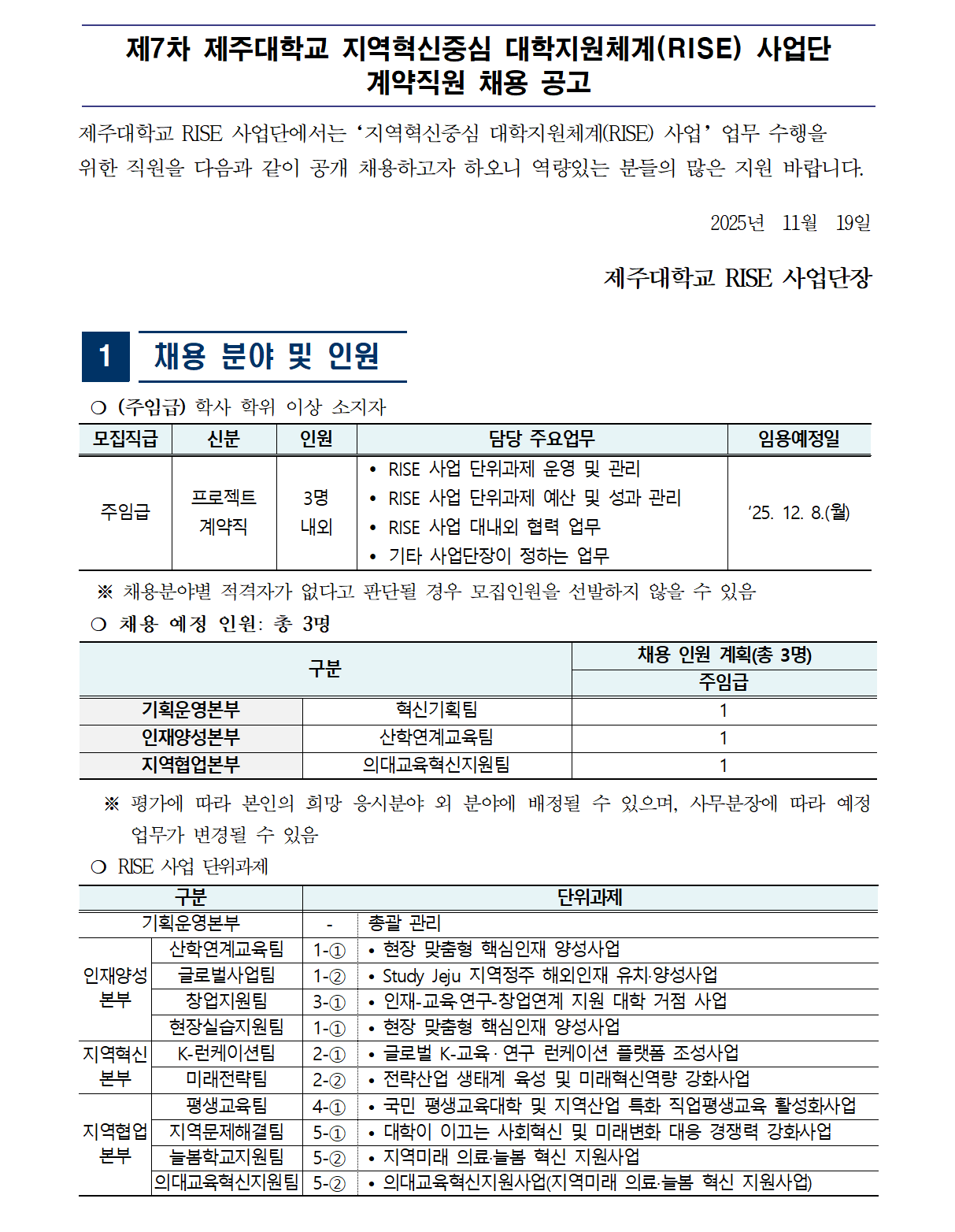 제7차 제주대학교 지역혁신중심 대학지원체계(RISE) 사업단 계약직원 채용 공고