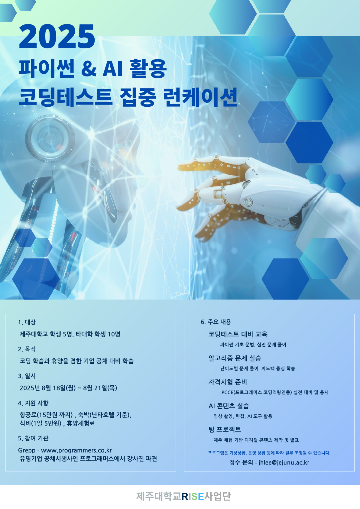 [제주대RISE사업단] 2025 파이썬&AI 활용 코딩테스트 집중 런케이션 참가자 모집