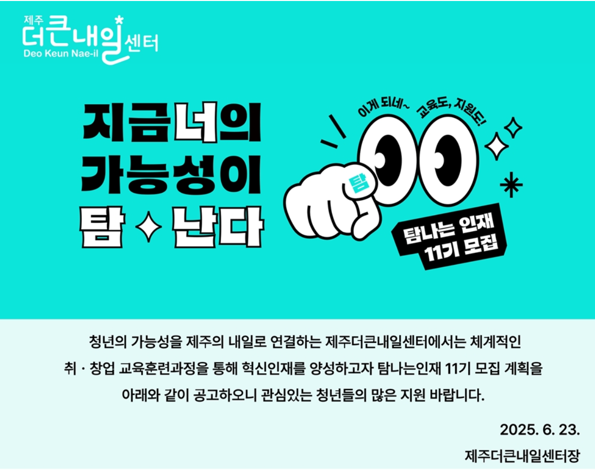 [제주더큰내일센터] 탐나는 인재 11기 모집 공고